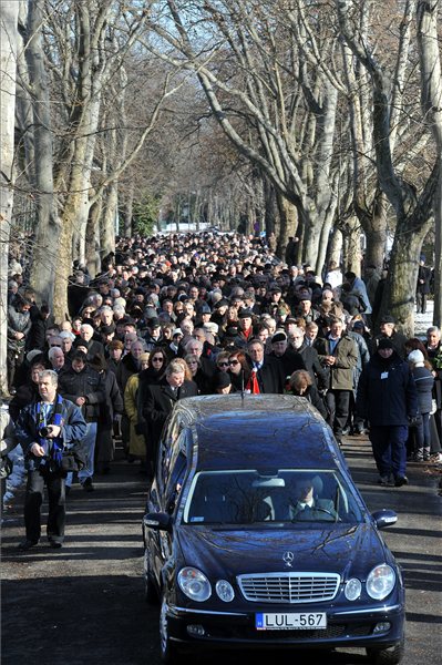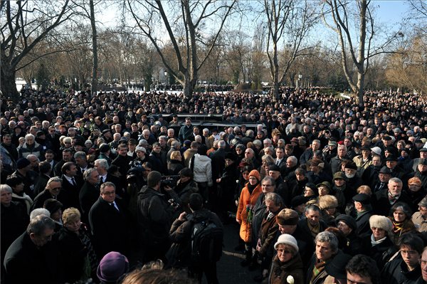 Az ’56-os hősök parcellájában lévő sírnál a gyászoló tömeg elénekelte a Himnuszt, majd tapssal búcsúztak Csurka Istvántól.