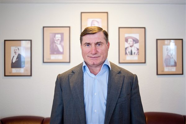 Richter József Jászai Mari-díjjal és a Magyar Köztársasági Arany Érdemkereszttel kitüntetett világhírű artistaművész, a Fővárosi Nagycirkusz új igazgatója áll irodjában, mögöttte a korábbi cirkuszigazgatók portréi láthatók, 2012. november 6-án. MTI Fotó: Kallos Bea