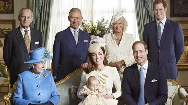 A legnépesebb fotón 12 személy látható: a királynőn, a boldog szülőkön és György hercegen kívül ezen a képen jelen van Fülöp edinburghi herceg, az uralkodó 92 esztendős férje, Károly trónörökös második felesége, Kamilla cornwalli hercegnő, Harry herceg, Vilmos öccse, valamint Katalin hercegnő szülei és két testvére is.