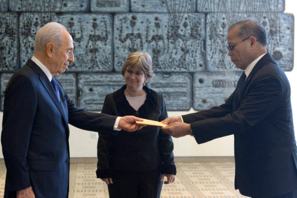 A nagykövet – mint arról az újság helyi idő szerint kedden beszámolt – a protokolláris esemény során több alkalommal is formát bontott. Egyrészt eltért az ilyenkor hagyományosnak számító – “Megtiszteltetés számomra, hogy átadhatom megbízó levelemet Önnek” – szövegtől, és ehelyett már a bevezetőben méltatta Peresz és Izrael érdemeit.