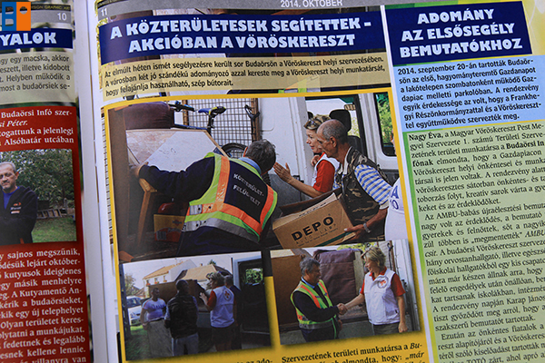 A 10-dik oldalon a Kutyamentő Angyalokat mutatjuk be, akik telephelyet keresnek Budaörsön és ebben kérik a lakosság segítségét. A következő oldalon a Vöröskereszt ehavi akcióiról olvashatnak.