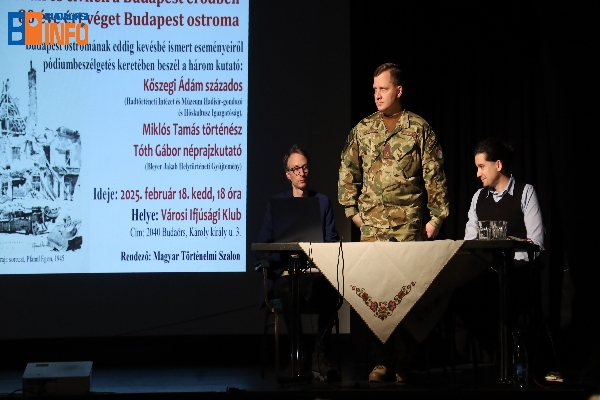 (Budaörs, 2025. február 20. – Budaörsi Infó) 2025. február 18-án délután a Városi Ifjúsági Klubban pódiumbeszélgetés zajlott Budapest ostromának 80 éves évfordulója alkalmából a Magyar Történelmi Szalon szervezésében.