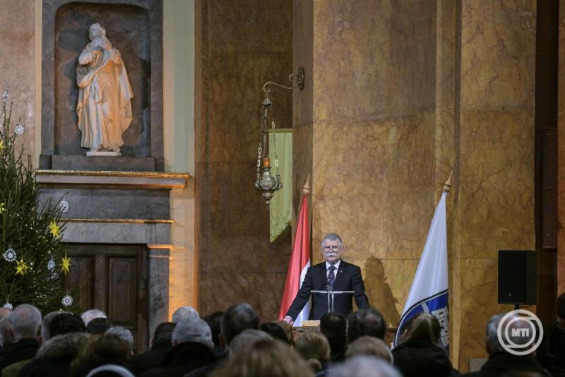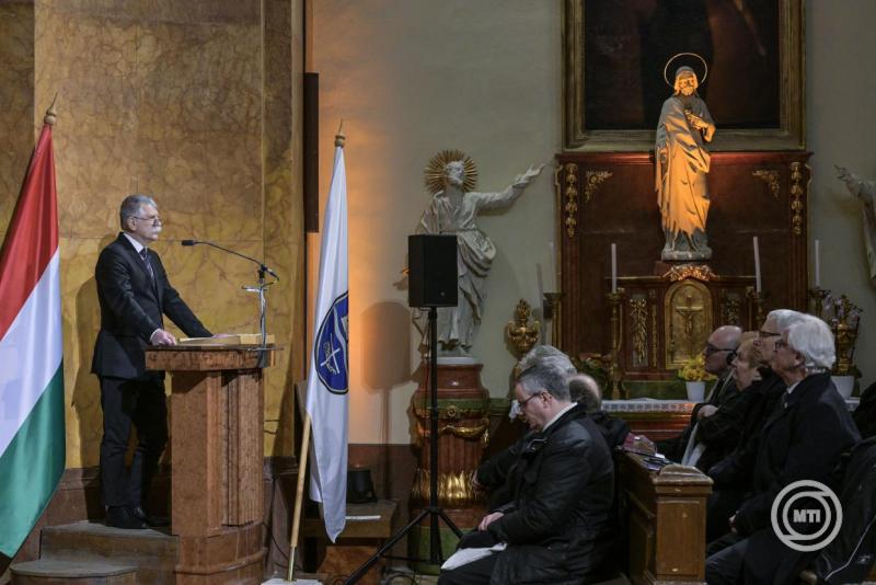 Kép: Budaörs, 2026. január 19. Kövér László, az Országgyűlés elnöke beszédet mond a magyarországi németek elhurcolásának és elűzetésének emléknapján a Budaörsi Nepomuki Szent János-templomban tartott szentmise után 2026. január 19-én. MTI/Szigetváry Zsolt