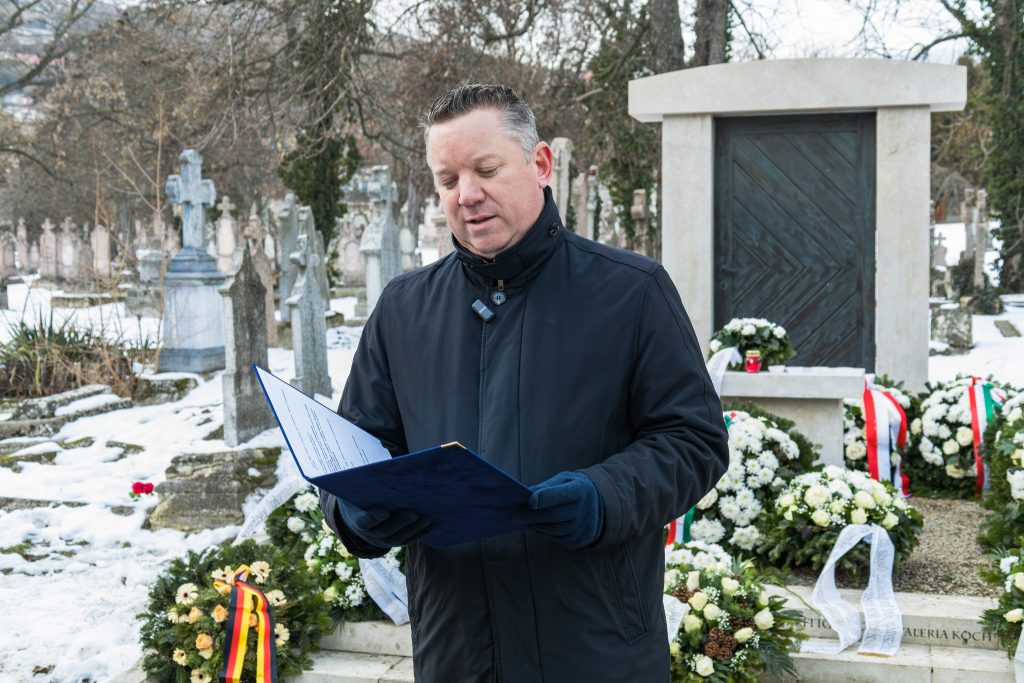 Az Ó-temetőben január 19-én a Tisza párt országgyűlési képviselőjelöltje, Pósfai Gábor is koszorúzott, Tisza Szigetek tagjaival.