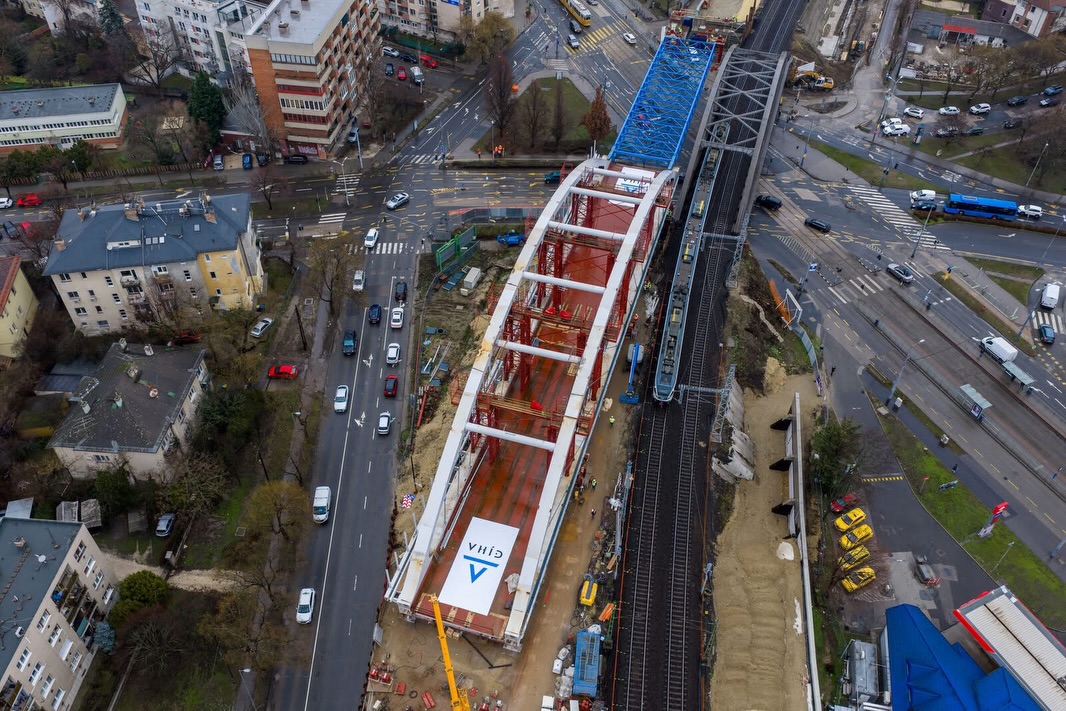Az új híd különlegessége, hogy nem daruval emelik be, hanem méterről méterre tolják a végleges helyére. A tervek szerint a hét végére a szerkezet elfoglalja helyét, ezt követően pedig megkezdődik a régi híd bontása és cseréje, hogy mind a négy vágány új műtárgyon haladhasson át a Bartók Béla út felett.