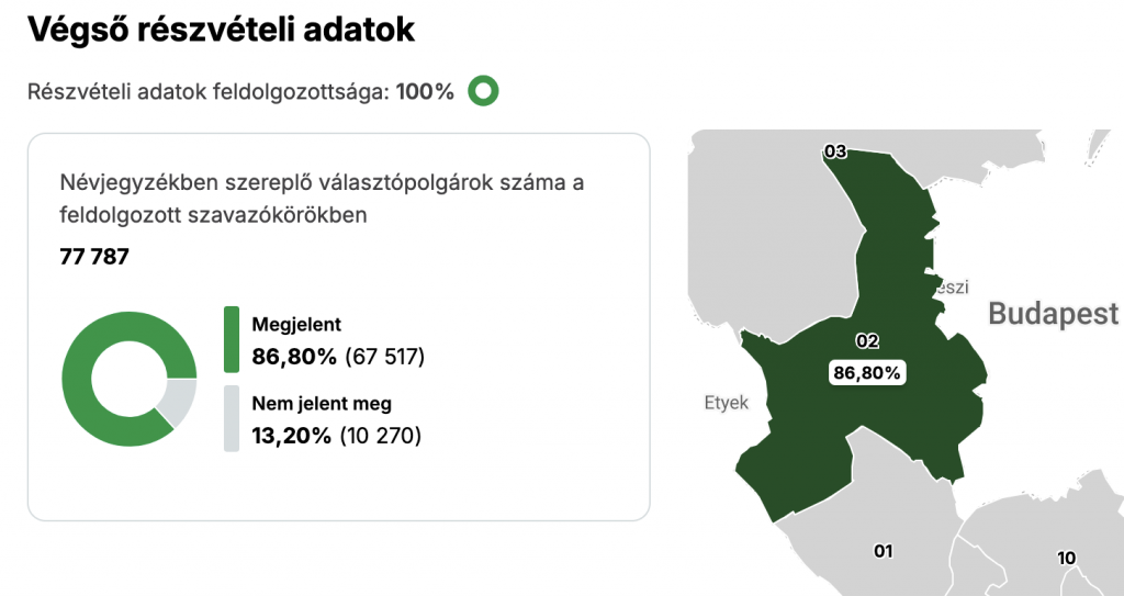 (Budaörs, 2026. április 13. – Budaörsi Infó) Lezárult az országgyűlési képviselők 2026. április 12-i választása. Az országos részvétel a Nemzeti Választási Iroda közlése szerint 77,80 százalék volt, miközben a szavazatok számlálása a szavazókörökben és a levélszavazatok feldolgozásával párhuzamosan zajlik tovább. Az NVI korábban jelezte: szoros eredmény esetén a teljes végeredmény csak később, a jogorvoslati folyamatok lezárulta után állapítható meg, az országos listás eredményt a Nemzeti Választási Bizottság legkésőbb május 4-ig rögzíti.